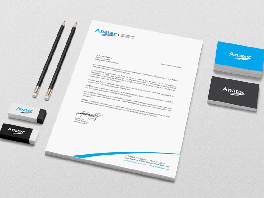 La Asociación Nacional del Transporte Terrestre de Carga ANATEC, es una institución con más de 50 años de trayectoria en la industria. Es por ello que decidieron reorganizar su Identidad Visual para transmitir esa experiencia adquirida. El proyecto consistió en realizar una Auditoría Visual para revisar las piezas de comunicación que han elaborado a lo largo del tiempo, posteriormente se ejecutó la etapa de Análisis de toda la información para detectar ciertas inconsistencias, luego se diseñaron las nuevas propuestas de la Identidad Visual y sus Aplicaciones en distintos soportes, para finalizar con el Manual de Marca y las normas que deben seguir para el correcto uso de la misma.